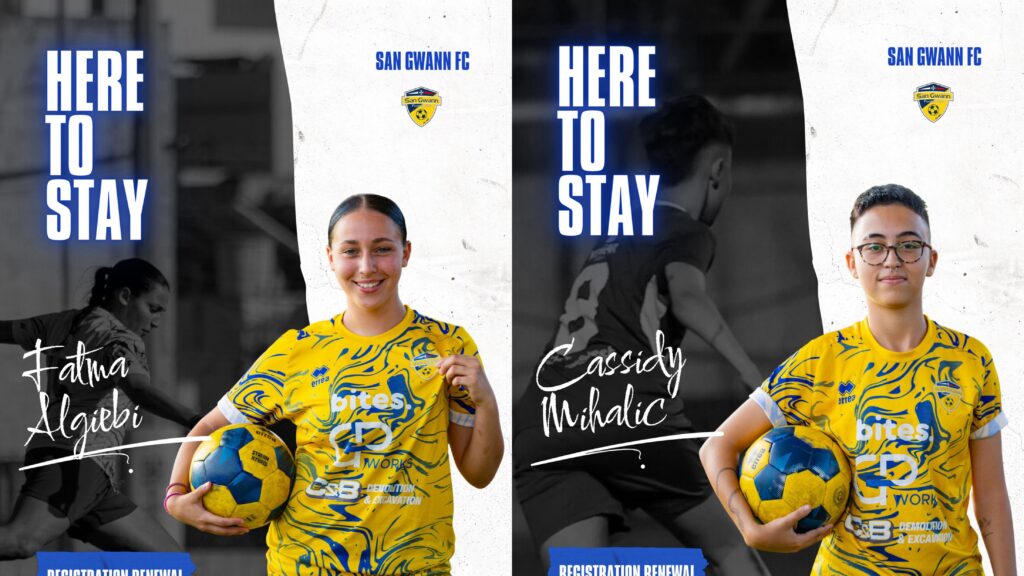 Meanwhile, San Gwann will continue to enjoy the services of Fatma Al Girbi who has been a stalwart for the team at both youth and senior level. Cassidy Mihalic has also extended her time with the club.
