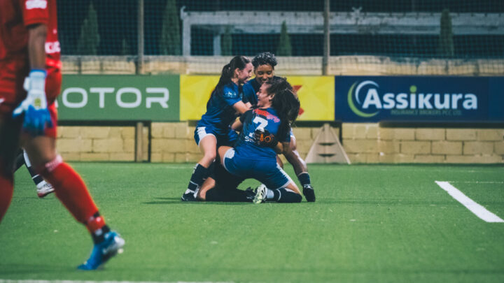 Mgarr United started strong. Valeria Villegas Caly fizzed an effort just over the far left post, before Ines N’Guessan played a cut-back to the Colombian which had just enough of a deflection to send it out for a corner. Bunched up at the penalty spot, Valentina Rapa headed out the delivery, with Scott Harrison getting involved in the follow-through to give a foul in favour of Swieqi United.