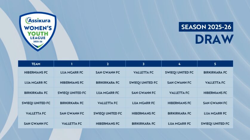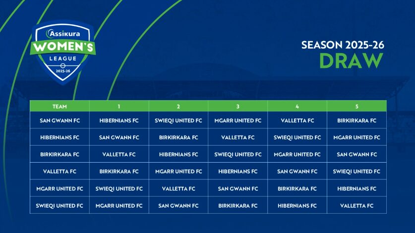 The draws revealed that the Assikura Women’s League is expected to feature six teams this season: Swieqi United, Mgarr United, Hibernians, Birkirkara, San Gwann and Valletta. There was no mention or much explanation of the disappearance of Lija Athletic and Mtarfa.