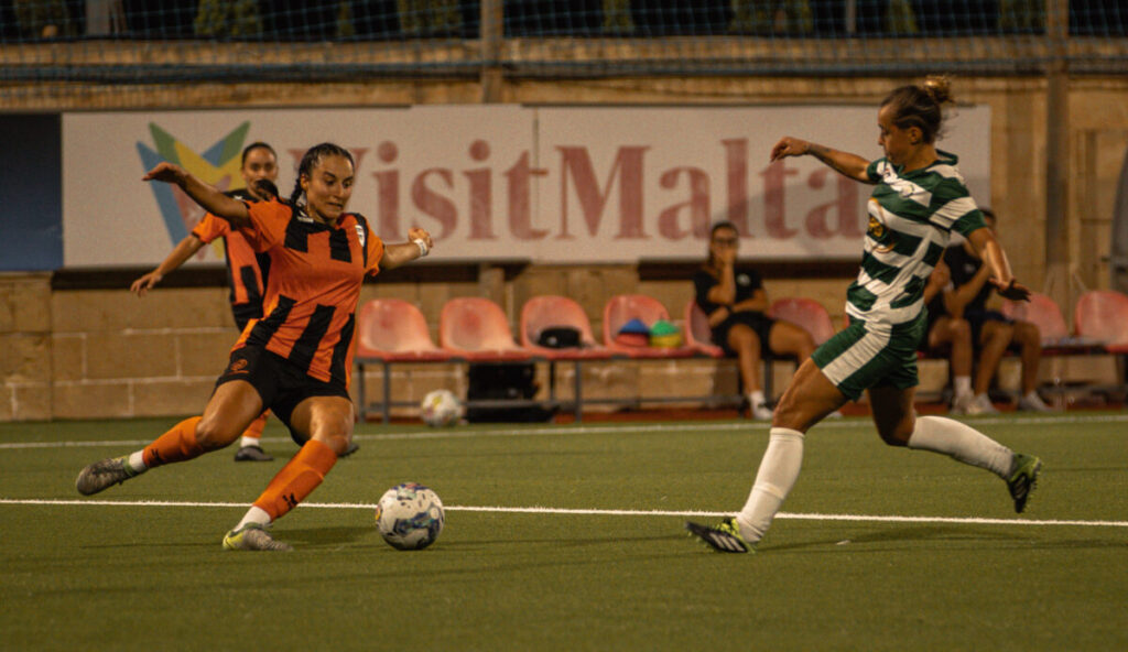 Salamatu Abdulai was the first to test Giulia D’Antuono, released behind by Andjela Kricak. However, the goalkeeper was equal to it from the tight angle. The Greens responded through Valeria Villegas Caly who fizzed a low finish from close range wide following a free-kick for Mgarr United, leaving both faithfuls with hands on mouth for very different reasons.