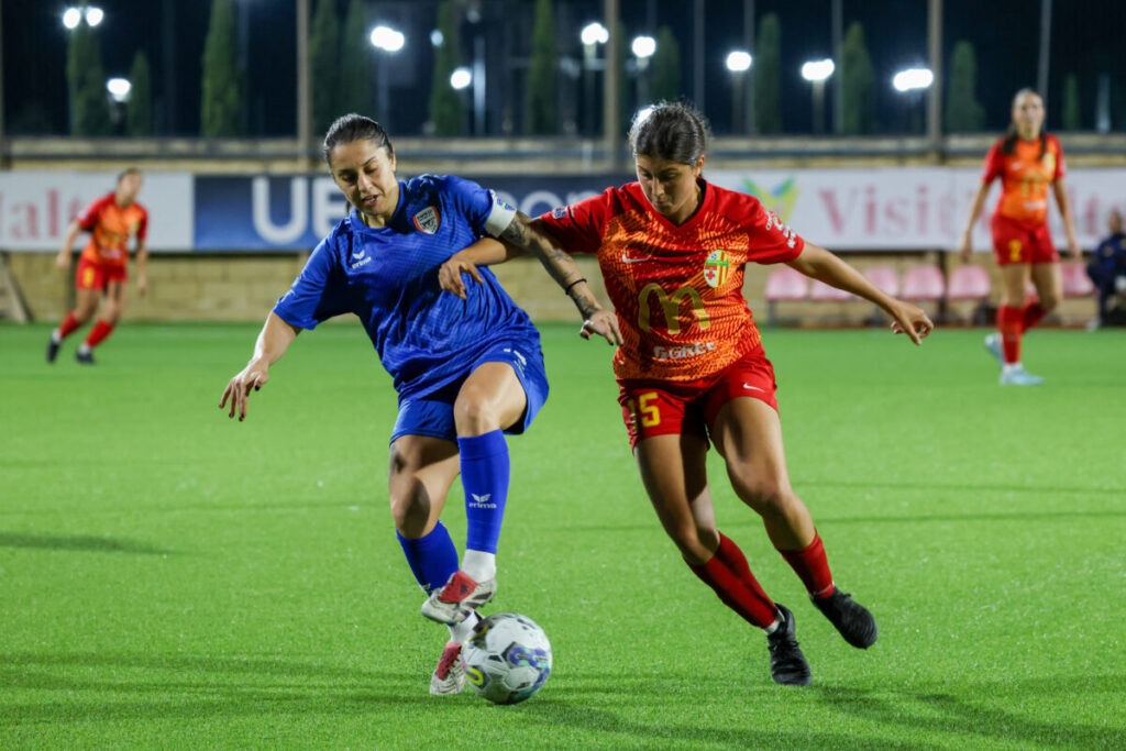 The Stripes responded through Mariah Cardona who was blocked from playing the cross to find Stella Francalanza by Valentina Rapa. Tammy Falzon headed away a deep delivery toward Ylenia Grech, before Valentina Rapa was also alert to clear a free-kick delivery from Momo Ueda.